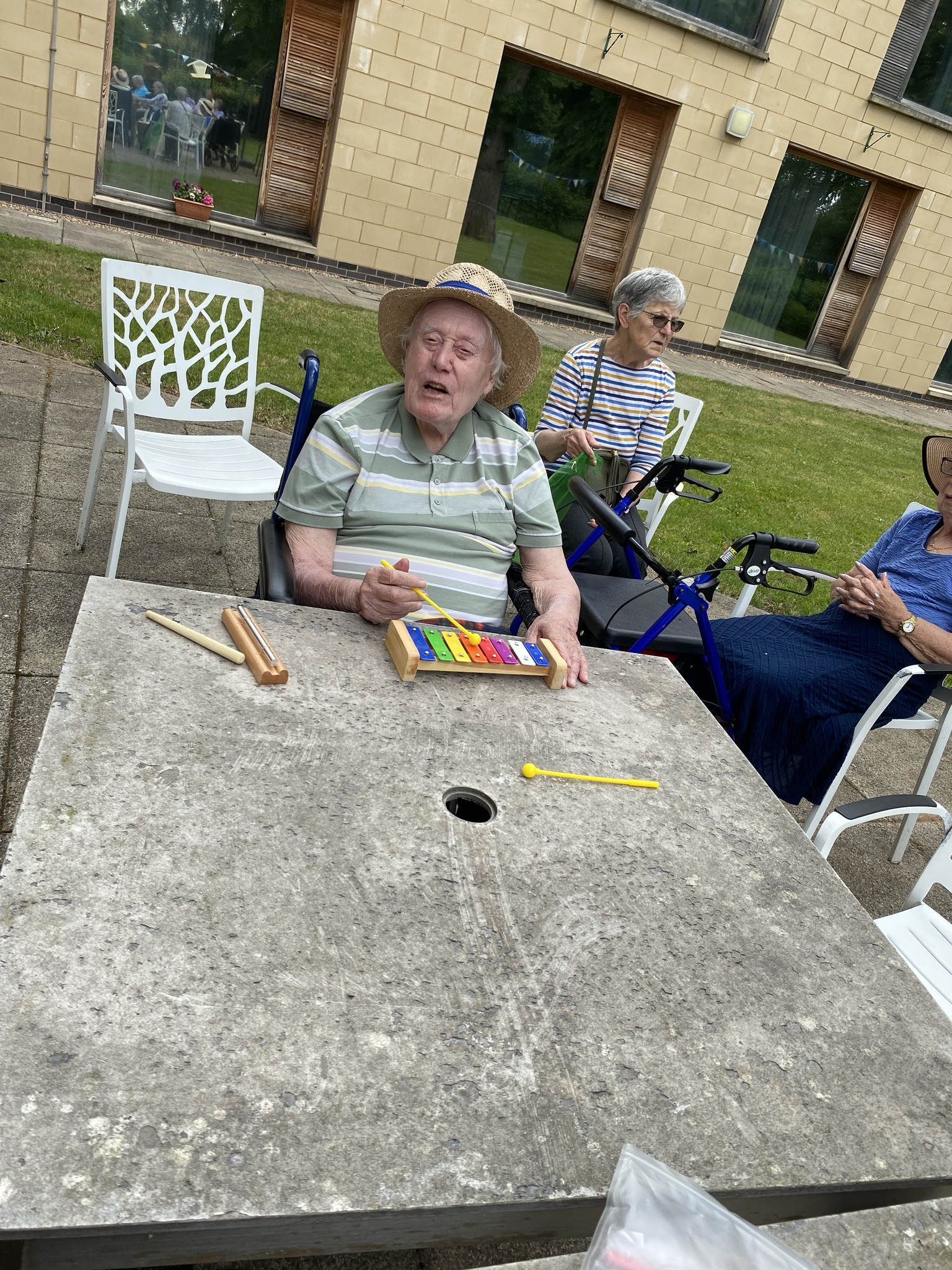 The residents at The Lakes and The Lodge at Freeland House enjoyed a sing-along in the home gardens with musical instruments.