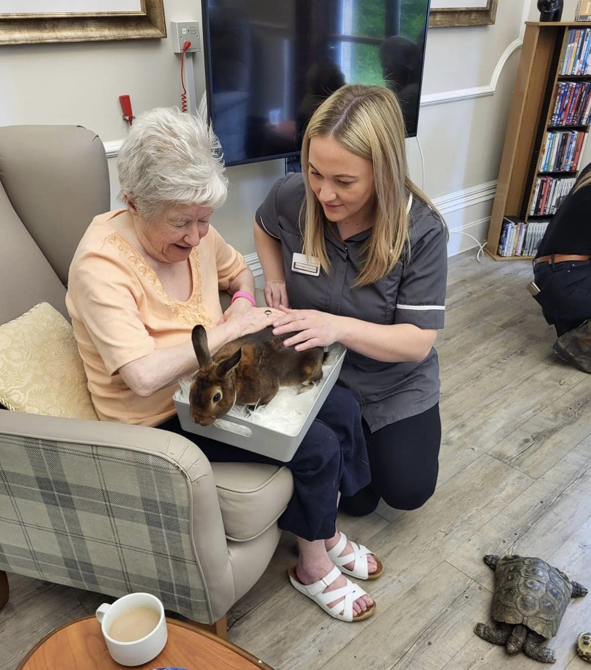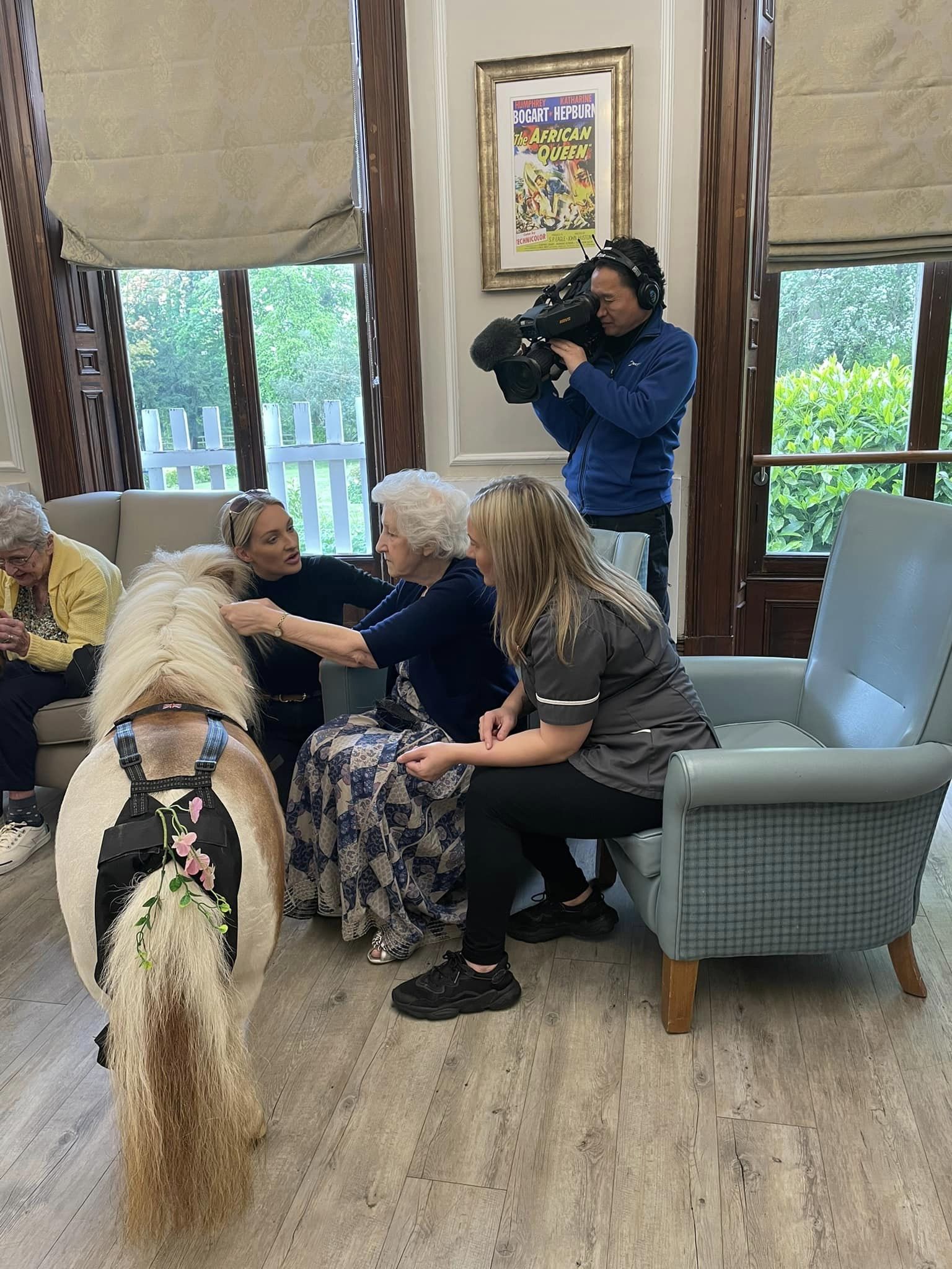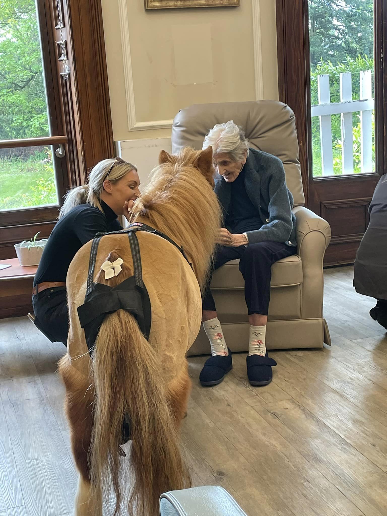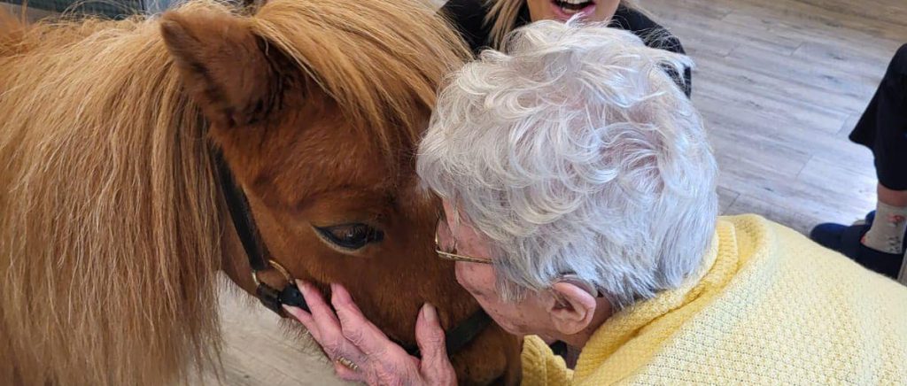 The Furry Friends animal therapy is a frequent visitor to Emmanuel House. The service connected with the home to collaborate for a video featured on BBC Look North. This video highlights the beautiful moments shared between residents and animals, and sheds light on the wider benefits that enhance the lives of our residents. The Furry Friends animal service visited the home with therapy ponies, rabbits, a baby tortoise and a snake. The animals greeted all the residents receiving lots of cuddles in return.