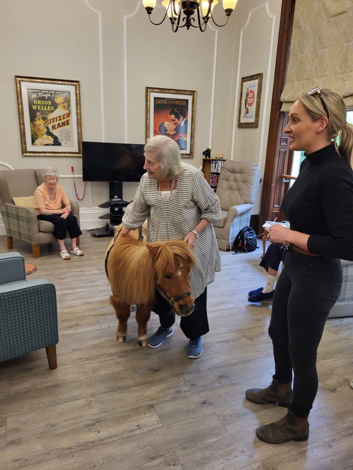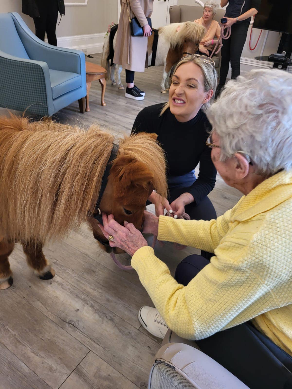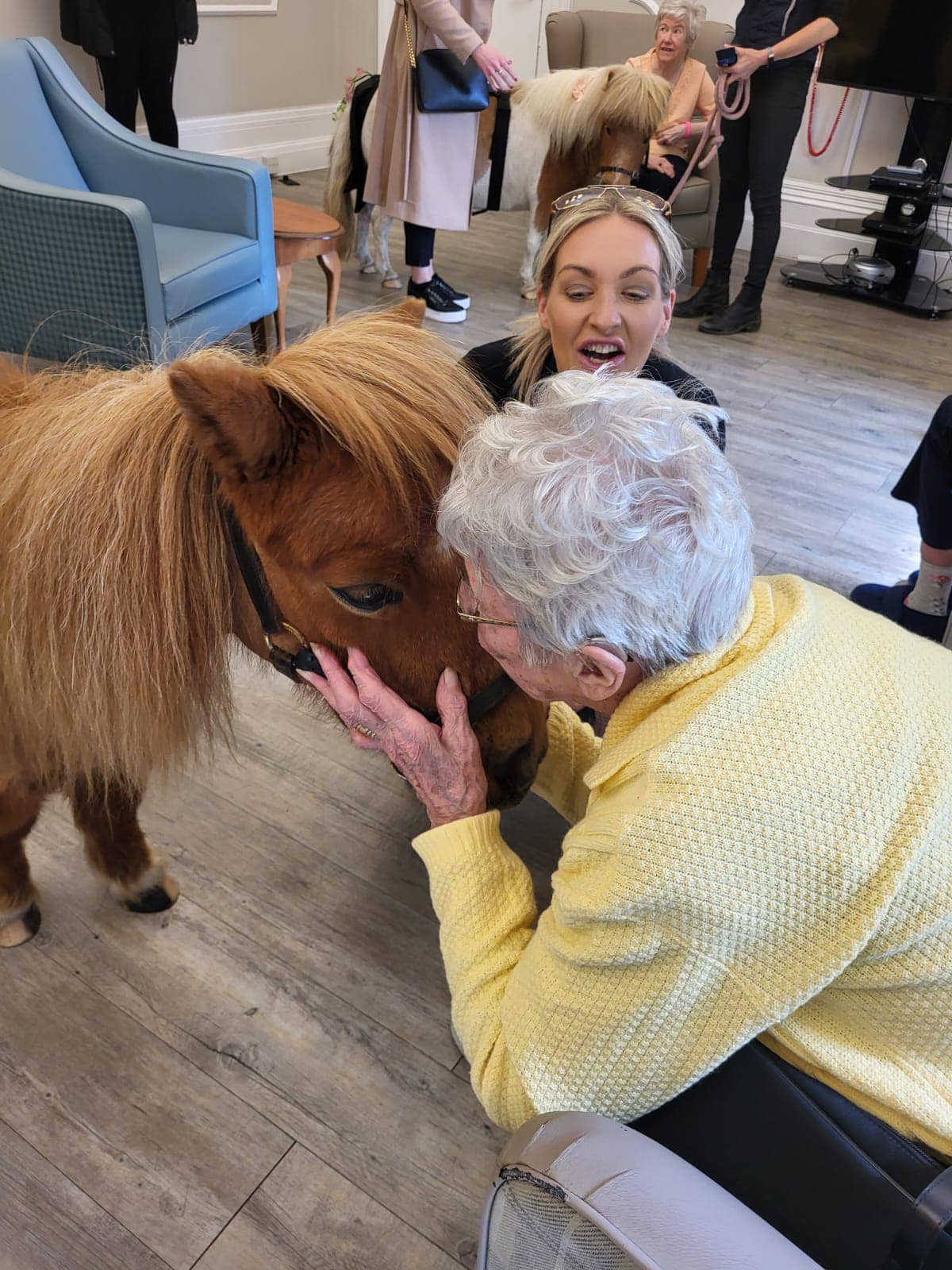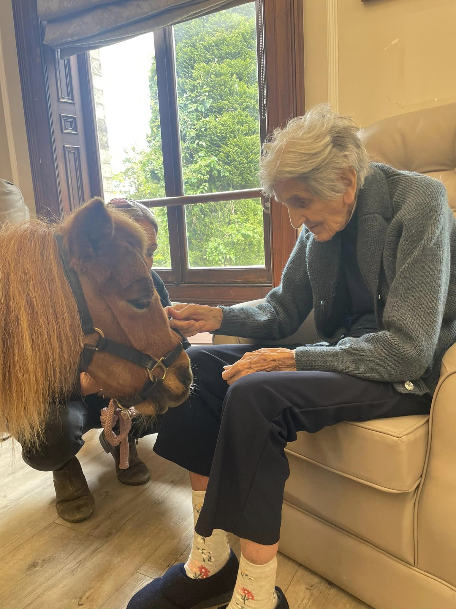 The Furry Friends animal therapy is a frequent visitor to Emmanuel House. The service connected with the home to collaborate for a video featured on BBC Look North. This video highlights the beautiful moments shared between residents and animals, and sheds light on the wider benefits that enhance the lives of our residents. The Furry Friends animal service visited the home with therapy ponies, rabbits, a baby tortoise and a snake. The animals greeted all the residents receiving lots of cuddles in return.